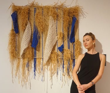 Before relocating to Portugal in 2022 due to war, Vik built a diverse creative career, contributing to international design, media, and storytelling projects. With a background in interior and product design, she worked as a journalist and interviewer, crafting in-depth narratives on architecture and design, and led editorial projects focused on creative industries. In 2019, she began developing her artistic practice in fiber art, working with natural materials like wool and seagrass to create tactile, emotive pieces.