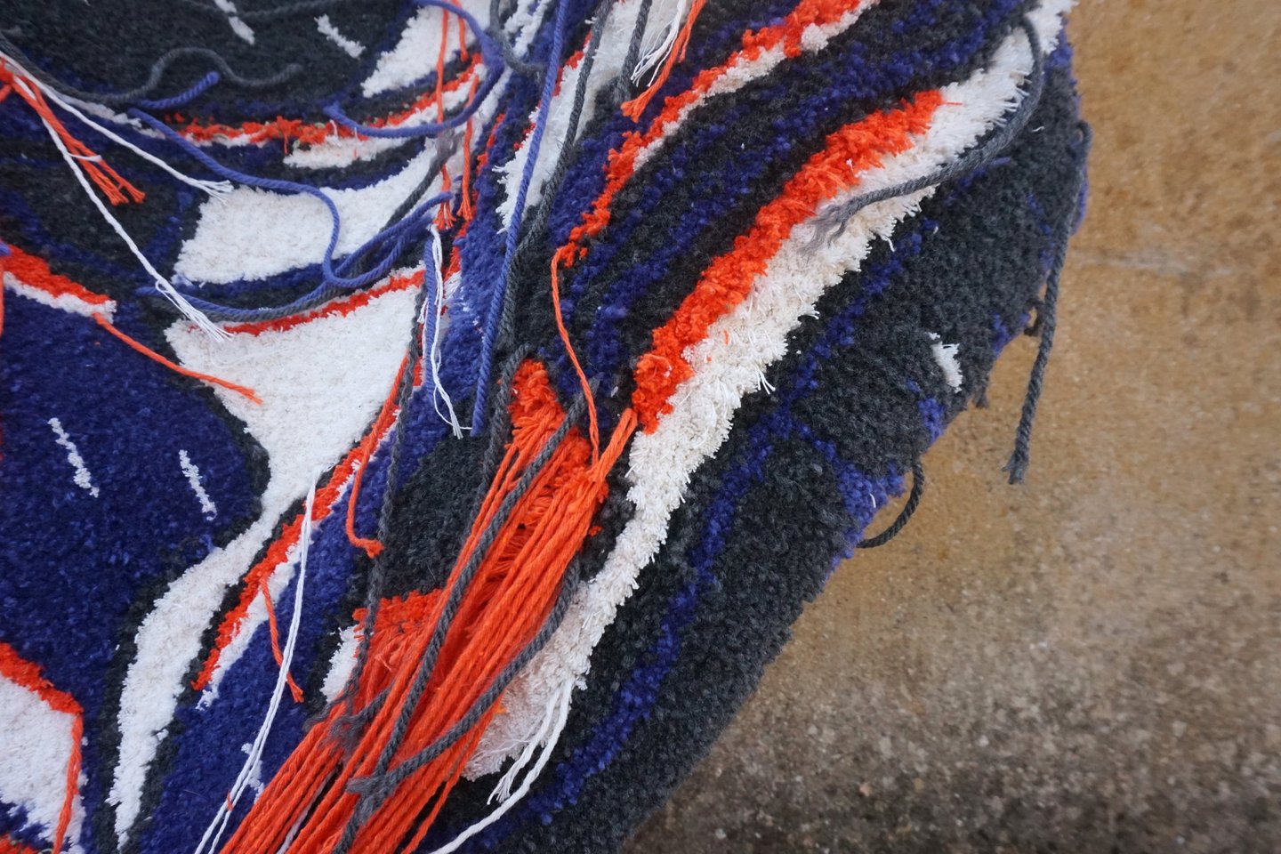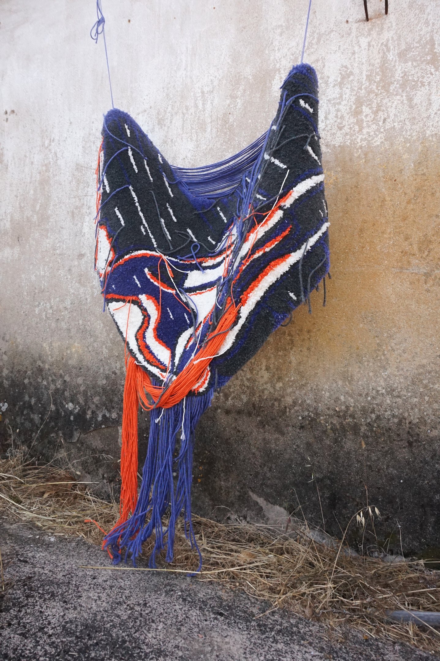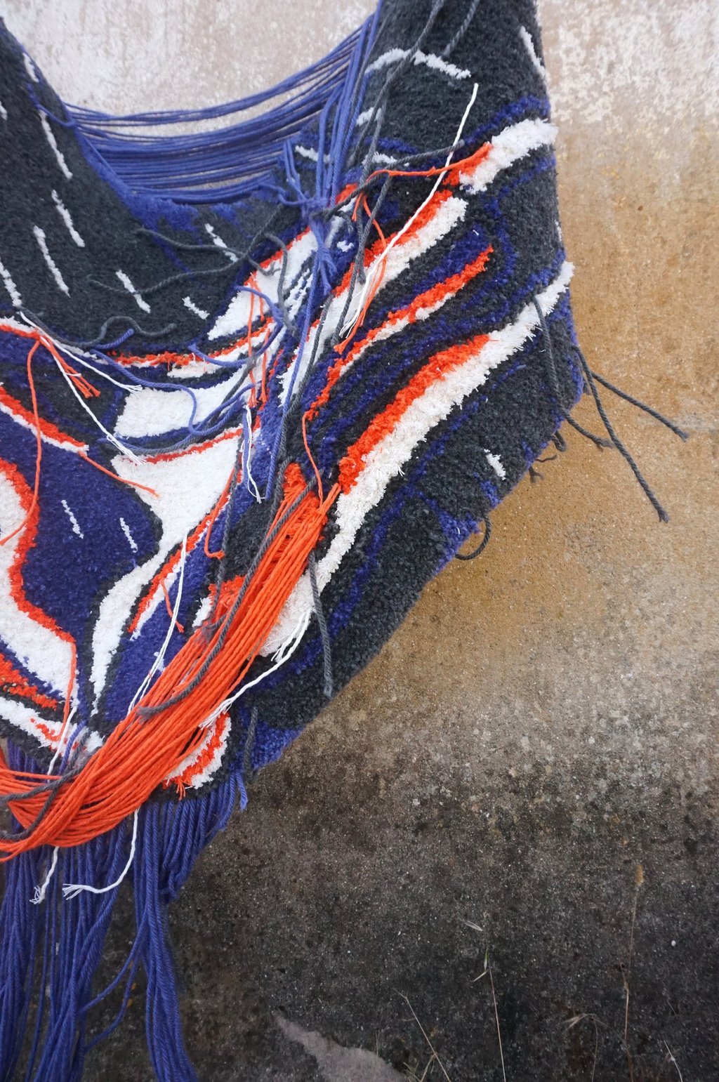 This piece was completed with equal parts intensity and injury: the final stage left me with two band-aids: one from a deep prick by the tufting needle, the other from scissors. Pain, effort, and vulnerability thread through the work, just as they thread through life under pressure.