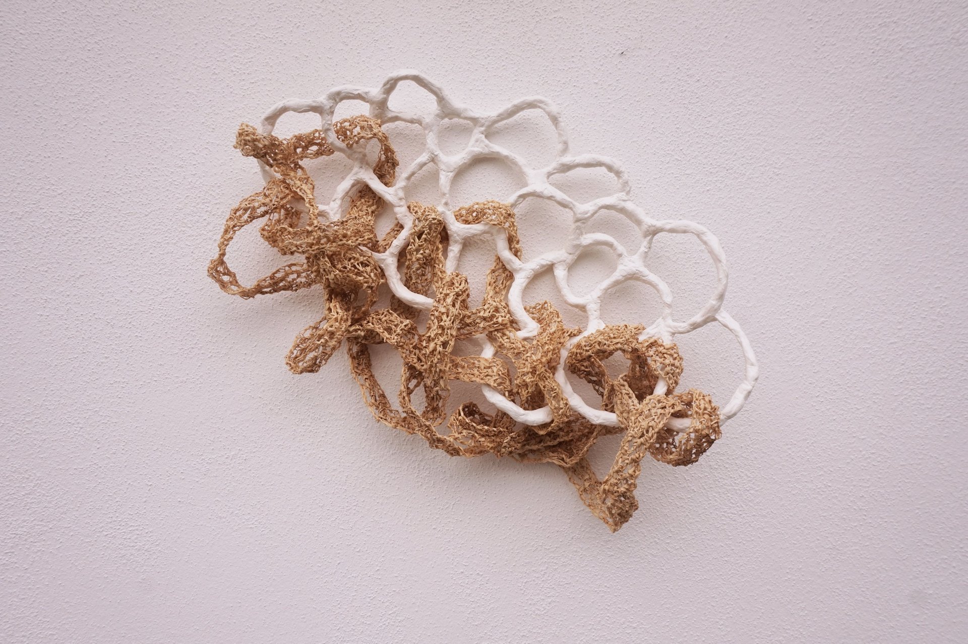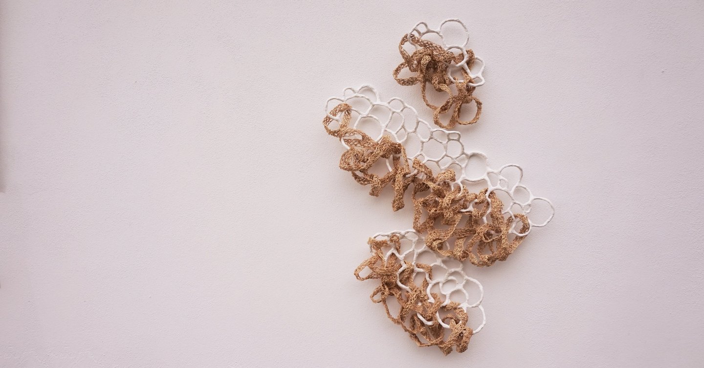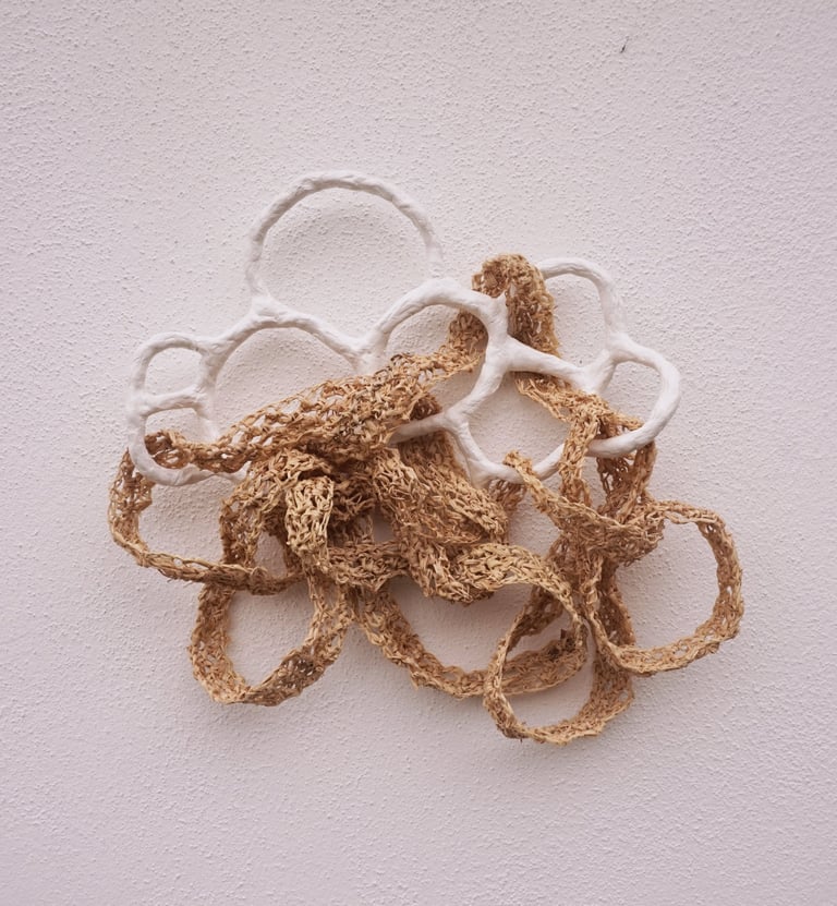 Laces is a sculptural series that reflects on the interconnectedness of life events — moments that weave into one another like threads in a form. Some of these lines are fragile and delicate, others are rough and resilient. The combination of hand-shaped ceramic structures and fiber-based elements speaks to the imperfection of formation, with fingerprints and marks left as quiet reminders of human touch and individuality