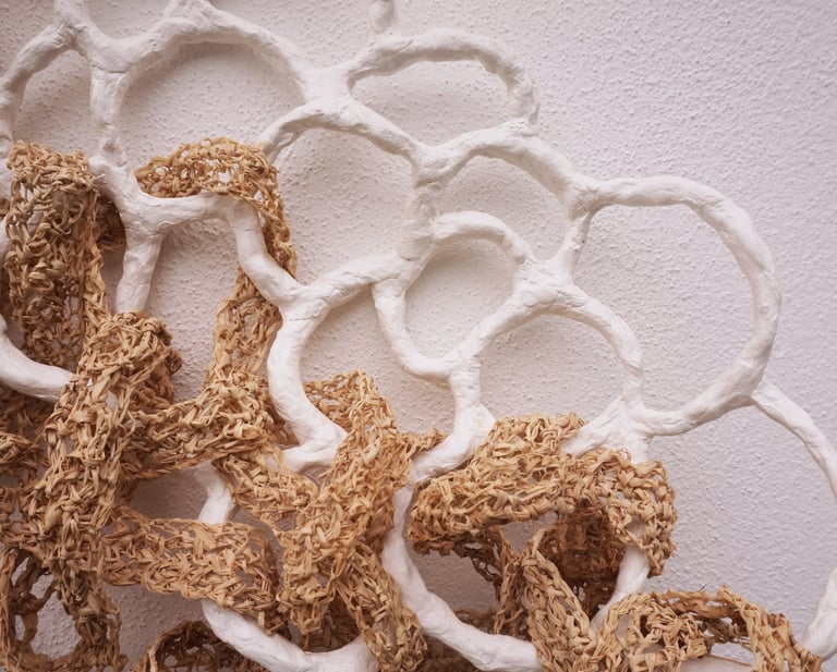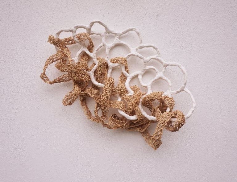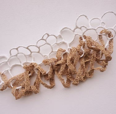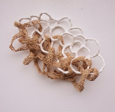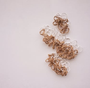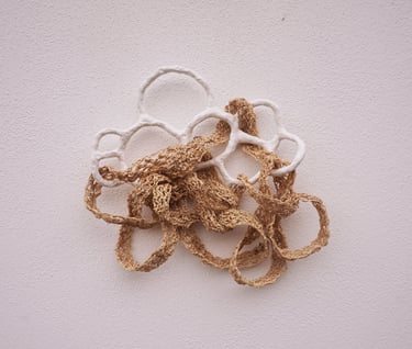 The work embraces irregularity and the raw traces of the creative process. These "laces" are not only visual metaphors but also tactile experiences, symbolizing the beautiful, chaotic, and often unbalanced rhythm of real life. Each sculpture is an unrepeatable composition, just like our own journeys. Despite their asymmetry or tension, they come together in forms that carry emotional weight and quiet harmony.