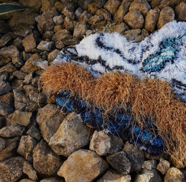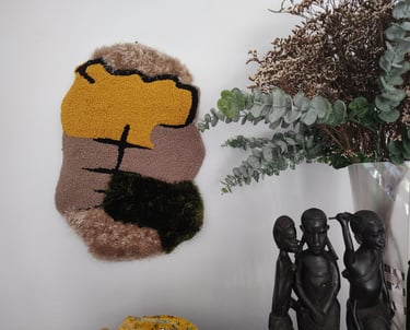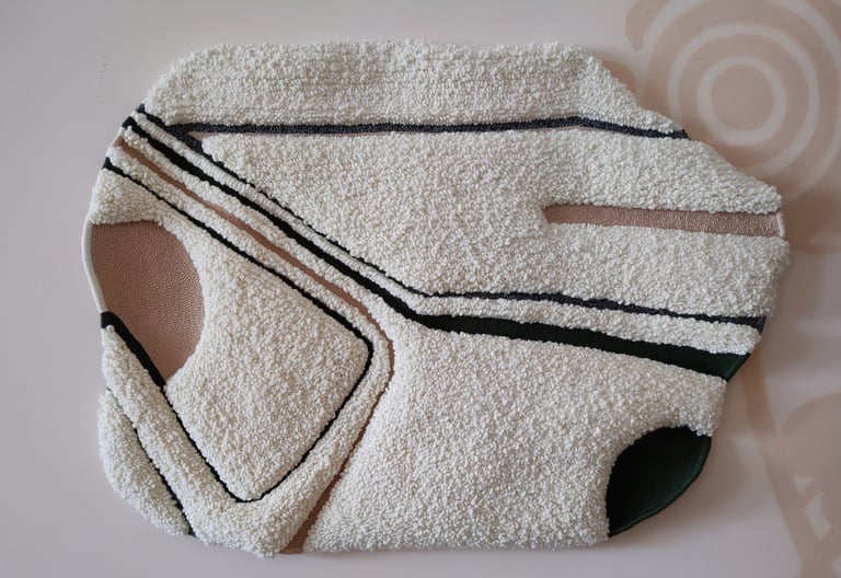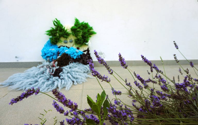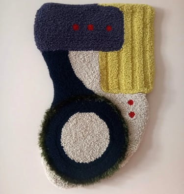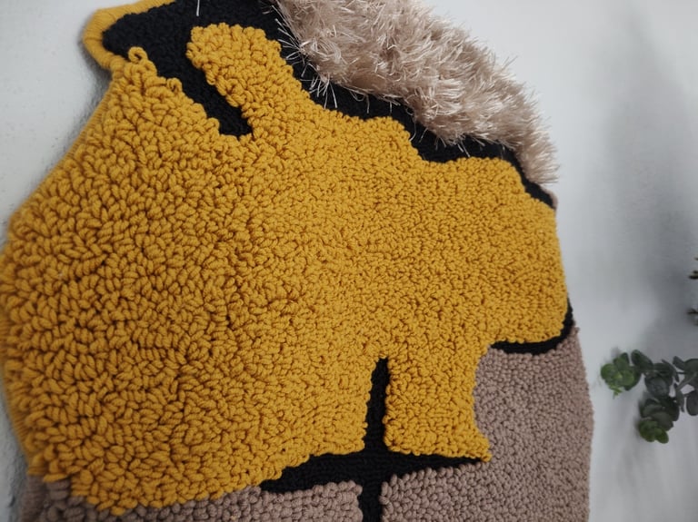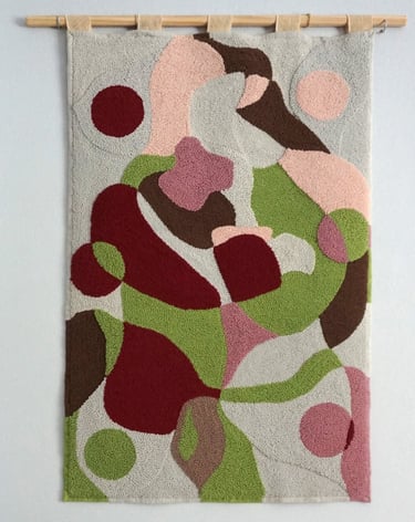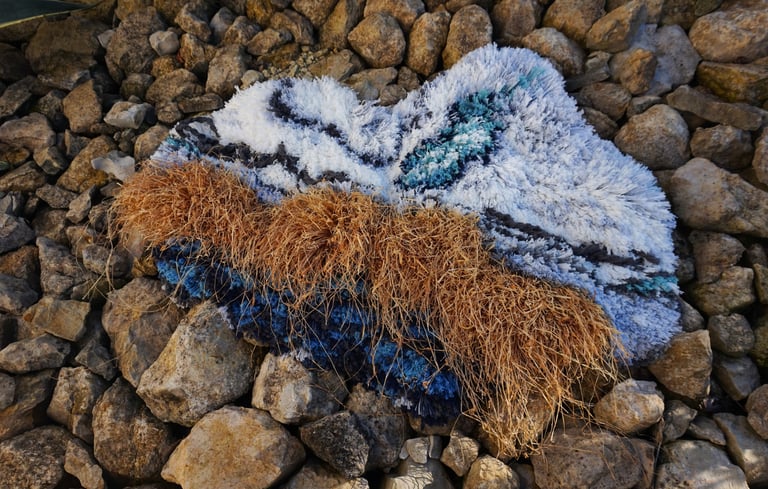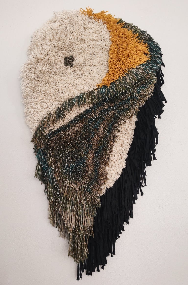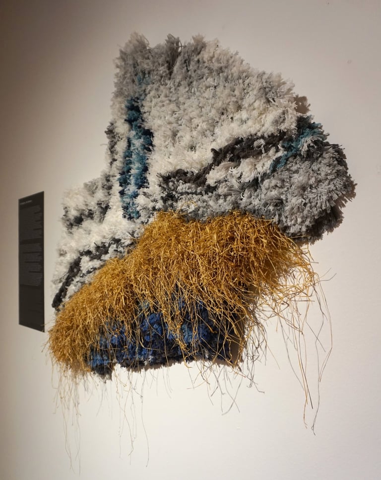 Wool, jute canvas, felting, latch hooking, 85*110h cm, 2024
