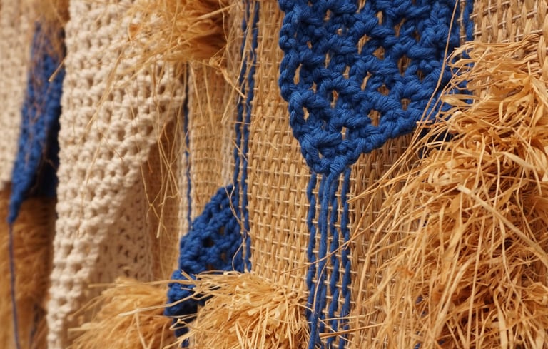 Seagrass, cotton cords, jute canvas; weaving, crochet, latch hooking; , 110*140 сm, 2023